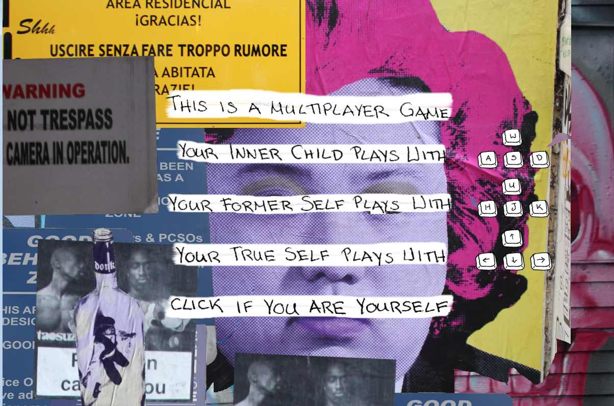 We collaged images from our trip and gave them behaviours to literally represent our observations from our psychogeographic wander. I will not say anymore since I feel this is very much a game that is a game for a reason: it cannot be expressed in anything that is not a game. (Although whether or not this is a game can be really contested. But that was the least of our worries.) You can play the game here.