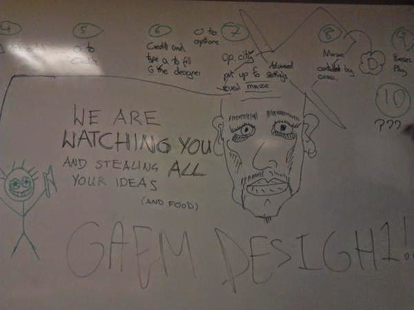 The game design document, essay and evaluation for the first semester have been handed in after a Christmas of lots of family and even more work. The labs were still when I came back except for a very worrying message left by a mysterious someone on the whiteboard: