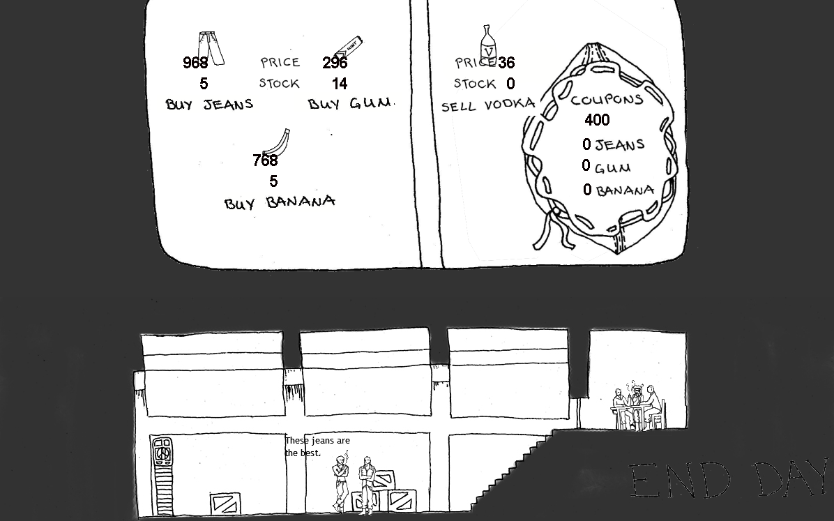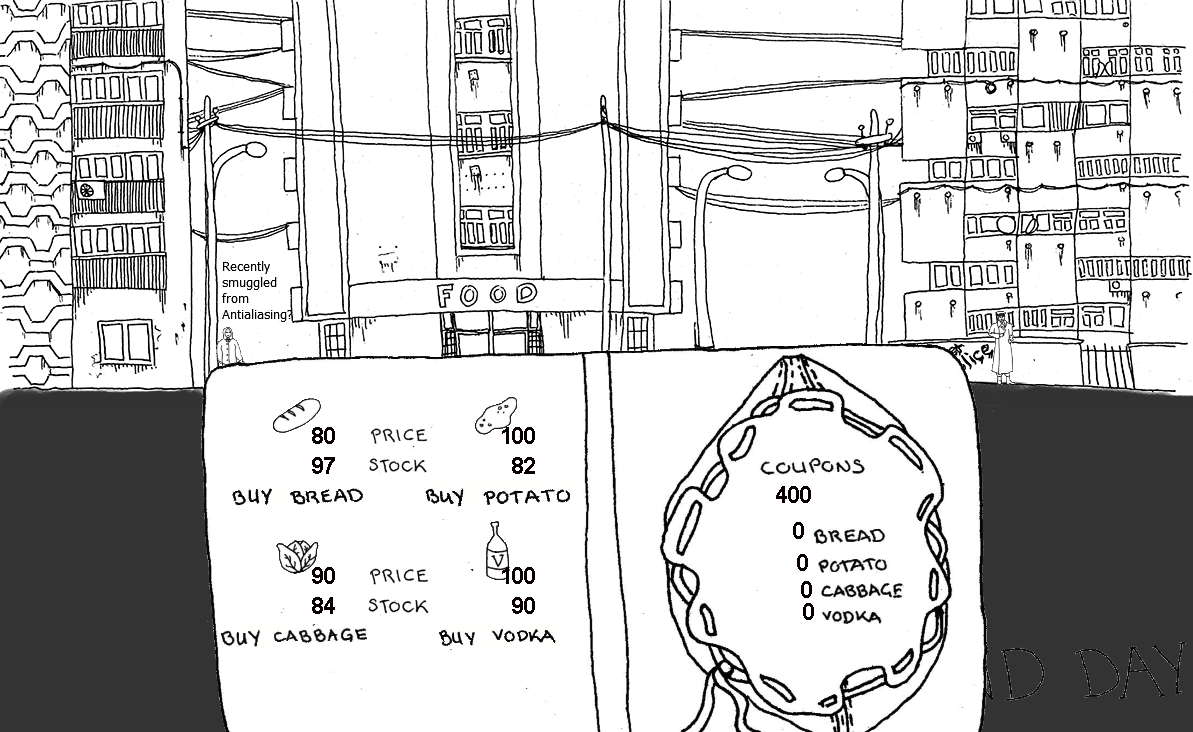 The game a week continues and this time we had to create an economic system. Maybe it was the fact I had traveled around eastern Europe all spring and summer, or the fact that I have been playing a lot of This War of Mine recently, but as Justin presented the challenge, my mind instantly traveled to a soviet area. The goal then is not to amass a huge wealth but to survive in a world where an unstable political background might affect weather or not you can buy bread the next day.