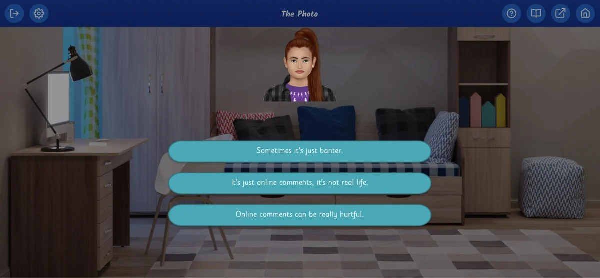 The players choices determine the health of the Relationship and Romance score that they have with each character. Choices are linked to one of the learning outcomes for each level.